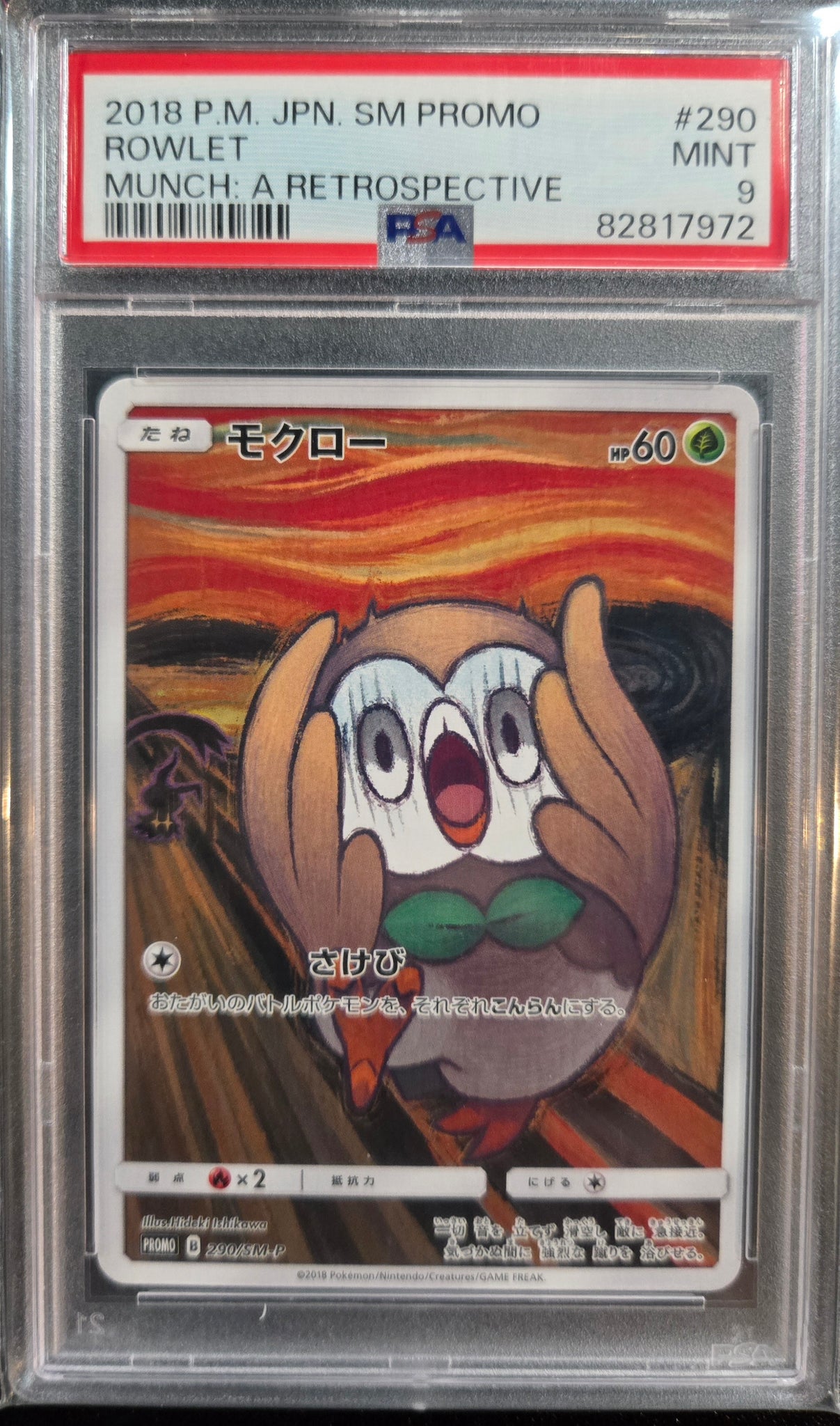 Rowlet - Pokemon Japanese SM 2018 PROMO Munch: A Retrospective #290/SM-P - PSA 9