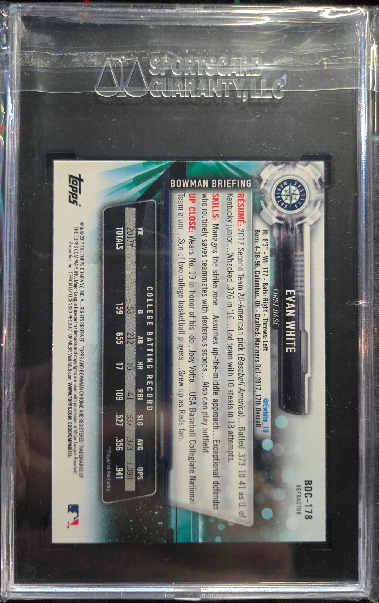Evan White RC - 2017 Topps Bowman Chrome Draft REFRACTOR #BDC-178 - SGC 9.5