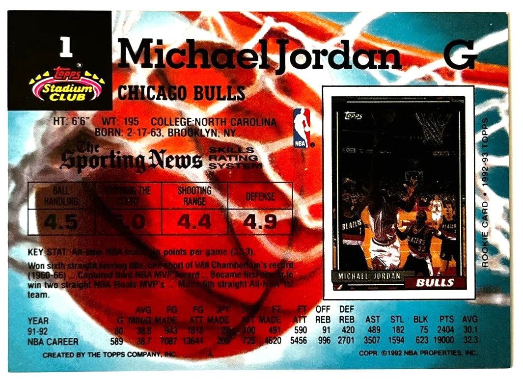 Michael Jordan - 1992-93 Topps Stadium Club NBA Basketball card #1