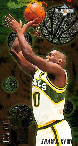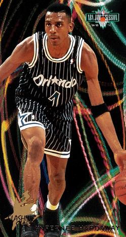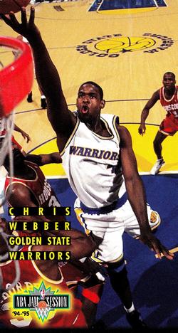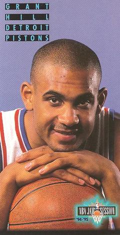 The complete 1994-95 Jam Session set consists of 200 oversized (2 1/2" by 4 3/4") cards. The fronts have full-bleed color action photos that are tightly cropped so the player takes up a larger percentage of the card than in most sets. The NBA Jam Session logo is superimposed on the lower right corner and the player's name and team is just above it in the teams color. The backs have color-action photos on the right side with statistics and information on the left that is set against the color of the player's team. The entire card is UV coated as are all the insert sets. The cards are numbered on the back and grouped alphabetically within teams. Rookie Cards of note in this set include Grant Hill, Eddie Jones and Jason Kidd.