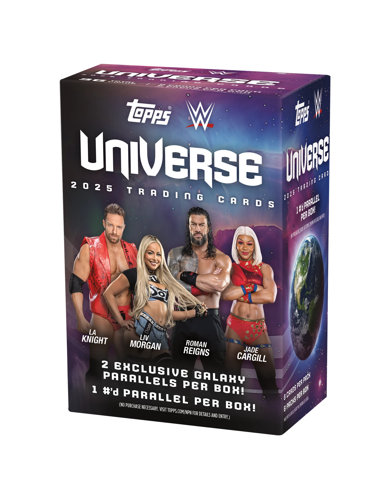 Topps Universe is where legacy meets the limitless! Built for Collectors who crave the extraordinary, Topps Universe transforms fan-favorite brands like WWE into cosmic showcases of artistry, innovation, and narrative. With eye-catching foil patterns, numbered parallels, and thrilling hits, Universe products are designed to capture the emotion and magnitude of pop culture’s most iconic franchises—in every pack.