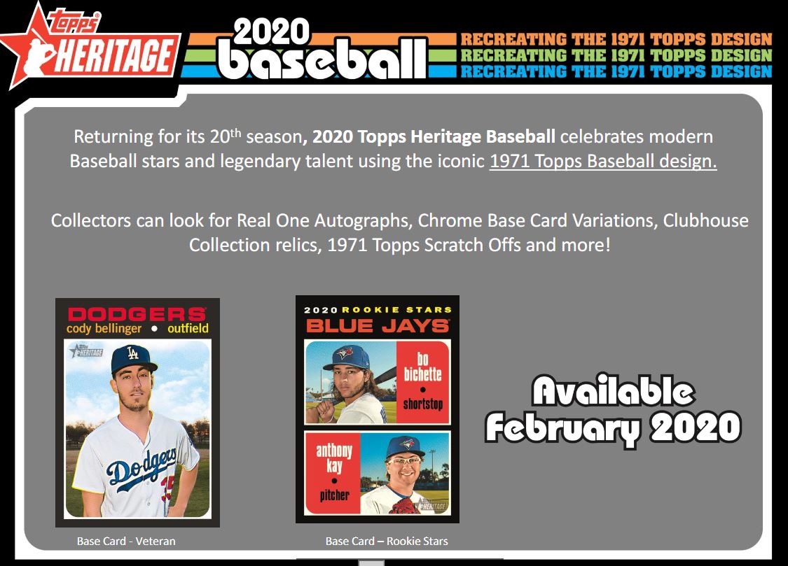 Returning for its 20th season, 2020 Topps Heritage Baseball celebrates modern Baseball stars and legendary talent using the iconic 1971 Topps Baseball design.