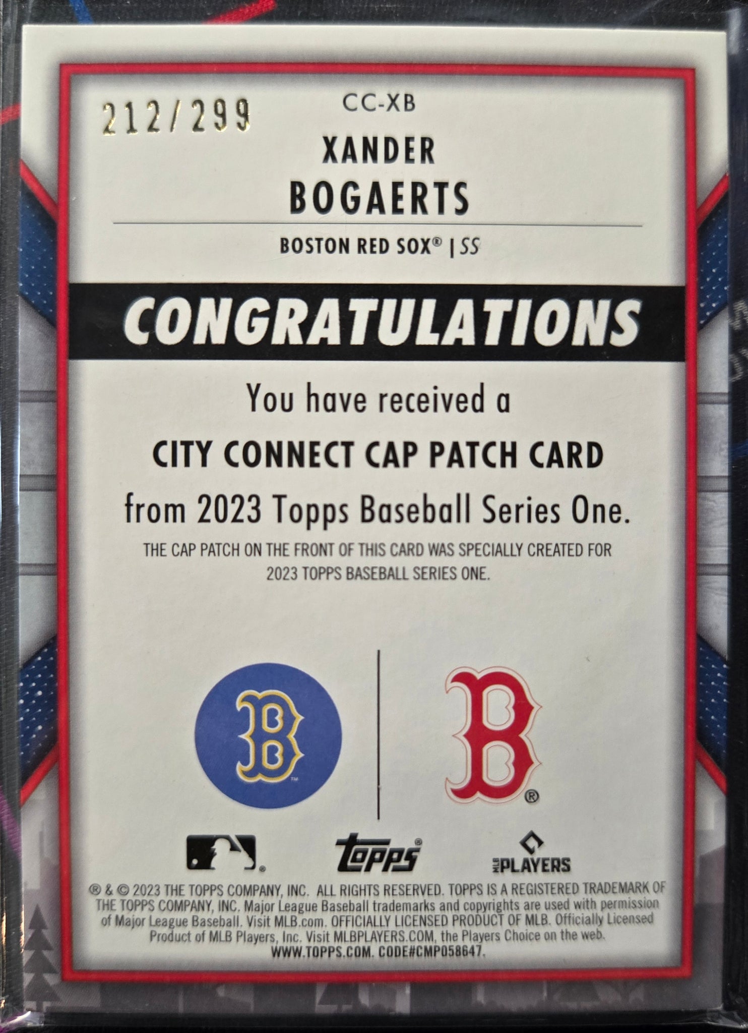 Xander Bogaerts #/299 - 2023 Topps Series 1 MLB City Connect Cap Patch #CC-XB